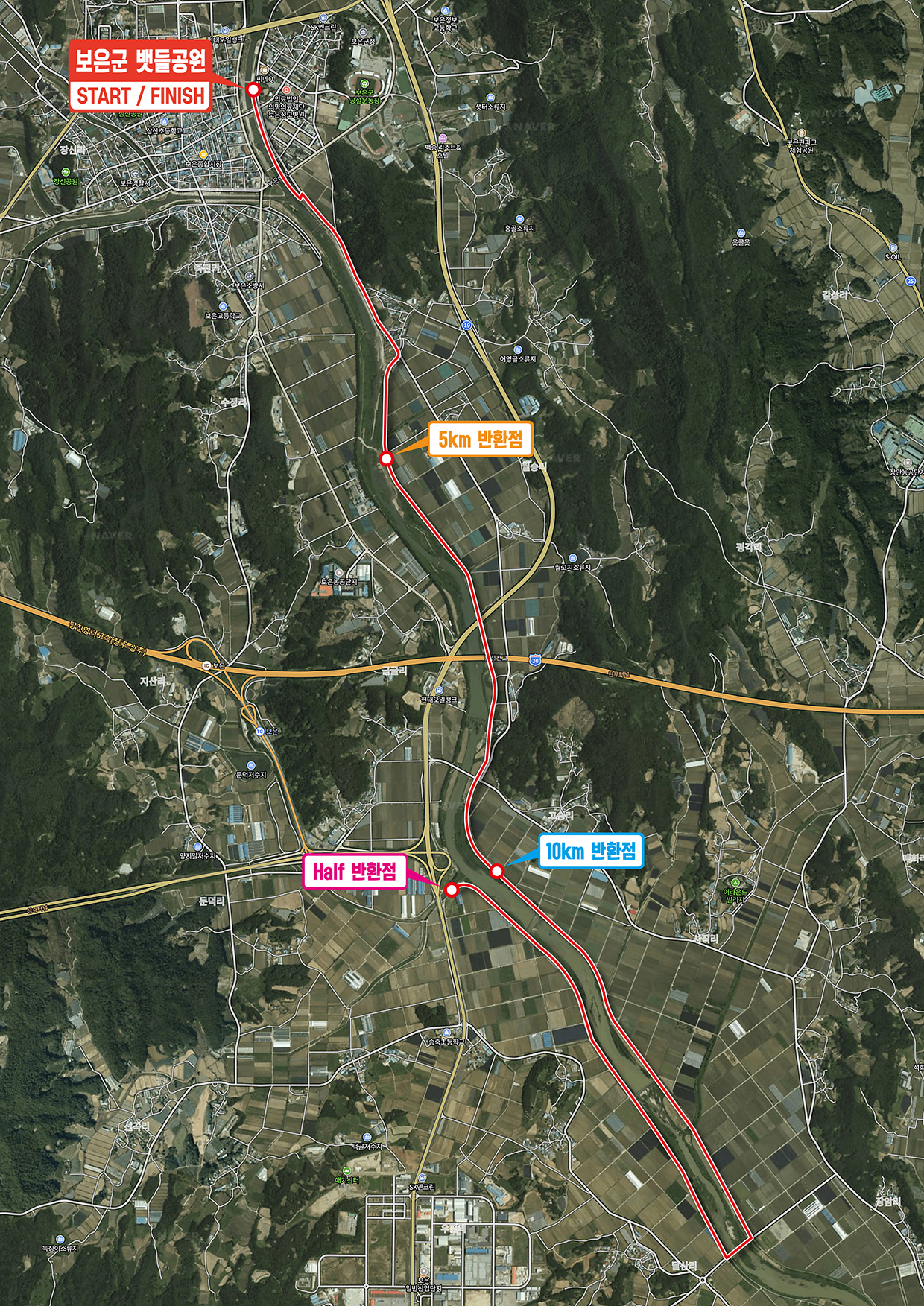 보은 뱃들공원에서 시작하는 마라톤 코스는 아래와 같습니다.