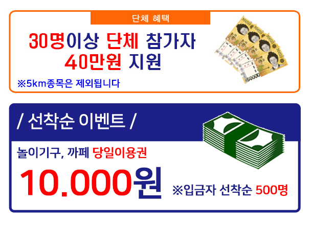 * 기념품의 종류에 따라 참가금이 상이합니다. 기록증은 모바일, 웹 기록증으로 제공됩니다.